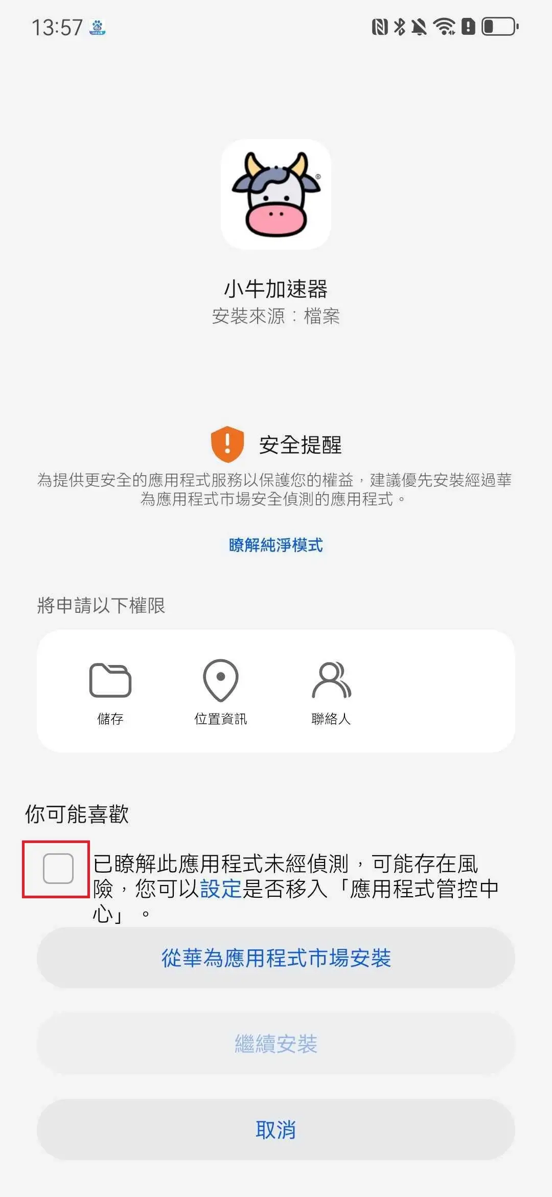 勾選「已瞭解此應用未經檢測」。